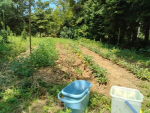 今年の夏は21日間も雨が降らない猛暑続きで、畑の管理も大変でした。草刈りをしても葉がすぐ枯れ、野菜の世話も難しく、水やりも1日起きでは追いつきませんでした。特に味菜は暑さに耐えられず、切るタイミングを逃すとすぐに傷んでしまいました。自然の厳しさを痛感した夏でした。