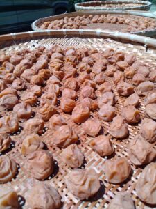 そんな暑さの中でも梅干し作りをしました。今年は赤しそを使わずに仕込みましたが、強い日差しで干すとシワシワになりすぎ、例年と違った仕上がりになりました。また、黒豆やピーナッツの栽培、りんごやみかん、ブルーベリー、そして初挑戦のメロンなど、さまざまな作物に取り組みました。メロンはご指導いただきながら栽培し、5個ほど収穫できました。暑さに負けずに育った命がけのメロンは特別な味わいでした。