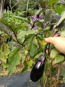 大根は、こぼれ種から自然に芽が出て育ったものもあり、畑のたくましさを感じます。パプリカも赤や黄色が少しずつ実り、ナスはもう時期的に大きくなりにくいながらも最後の実りを見せてくれています。