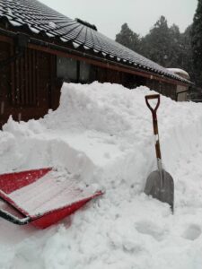 また、冬の定番作業である雪かきも行いました。屋根から落ちた雪を片づけたり、木の剪定を進めたりと、この時期ならではの仕事が続いています。