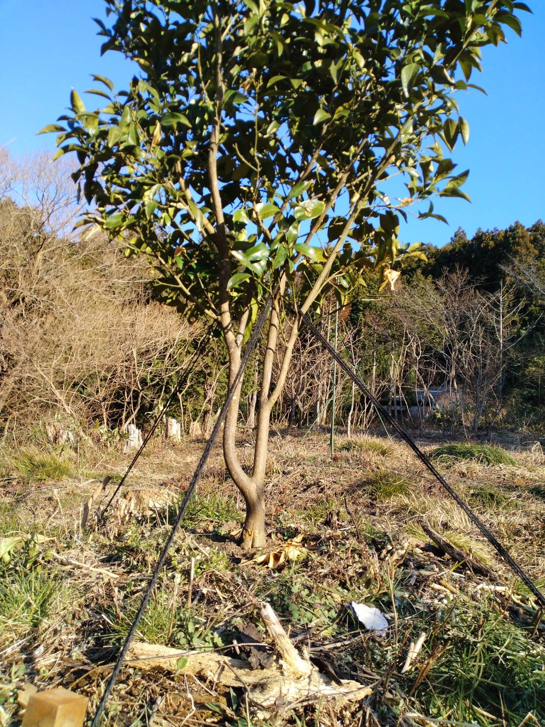 昨年12月の強風の影響で木がかなり揺さぶられ、ぐらつきも出ていたため、紐で支えながら剪定も進められました。高いところの実は収穫が難しいため、手入れをしながら無理のない形で整えていく様子が伝わってきます。